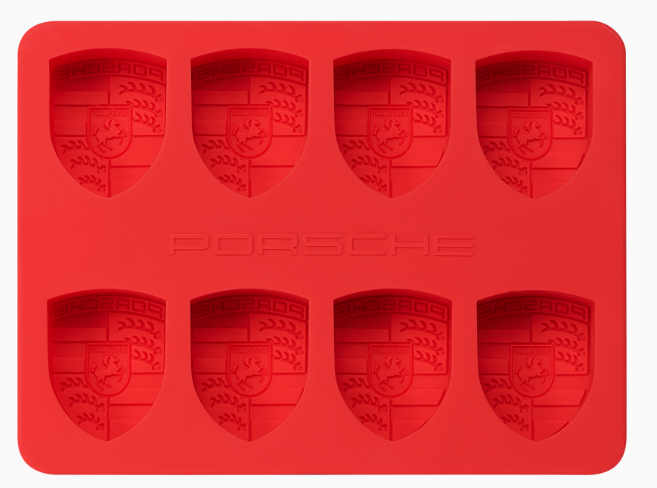 Bandeja para cubos de gelo com escudo da Porsche em silicone adequado para alimentos.