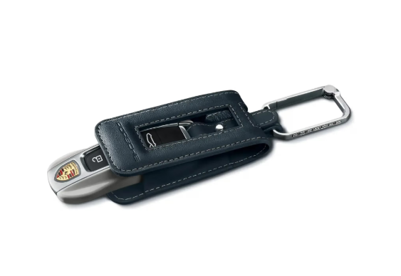 Confeccionado em couro de acabamento liso na cor interior selecionada, com o brasão da Porsche em relevo e costura decorativa.