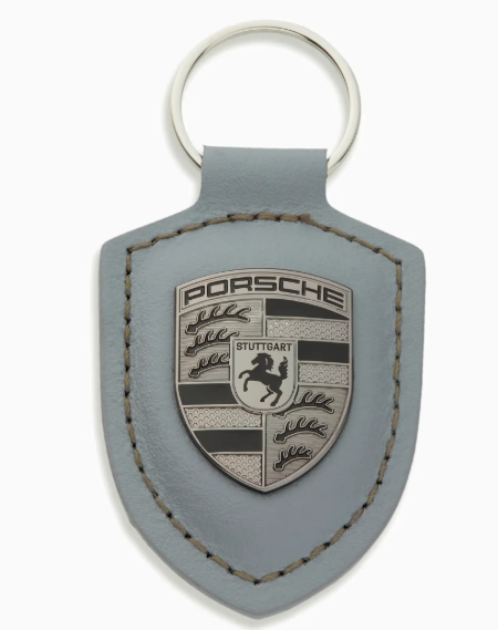 Chaveiro exclusivo em couro genuíno com o inconfundível brasão da Porsche em Turbonite. Fabricado na Alemanha.